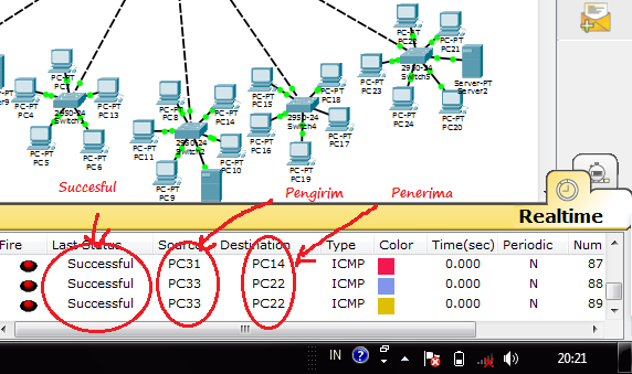 Kita telah melakukan pengiriman dan penerimaan pesan dan menghasilkan status “Succesful”. Namun kita belum melakukan PING antara server atau PC. Cara ini sama halnya kita meng-compile rangkaian ini.